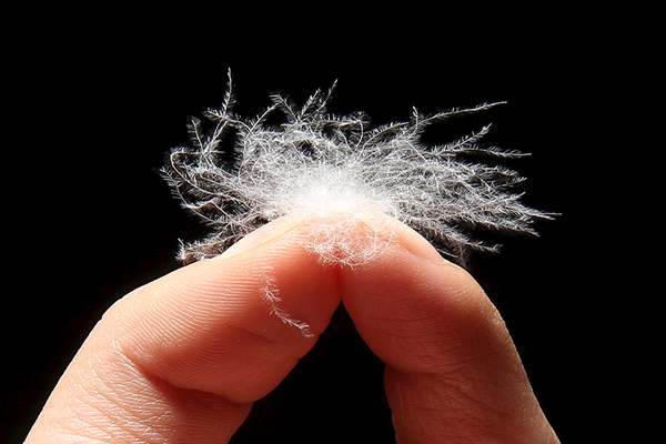 羽絨有一個(gè)三維結(jié)構(gòu),所以它可以“擴(kuò)展”。在相同的重量下,絨毛中的每一簇細(xì)絲都能比其他任何材料容納更多的空氣。每克羽絨大約有70000根細(xì)絲,這些細(xì)絲相互重疊、纏繞形成一層保護(hù)層,通過保持空氣在適當(dāng)?shù)奈恢脕肀3譁嘏徒^緣。