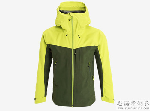 沖鋒衣定制款式大多以高高的立領為主,領后位置是比較明顯的,企業logo和口號之類的都比較適合。