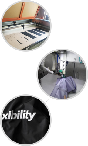 本廠擁有無縫車間,鐳射激光切割機,只需要輸入紙樣,全自動激光切割,整齊美觀無毛邊。無縫口袋,無縫鐳射透氣孔等制作。