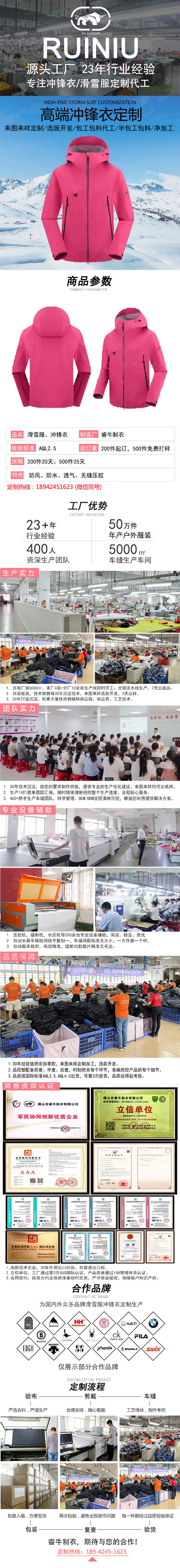 持續23年專注沖鋒衣、滑雪服定制加工廠家