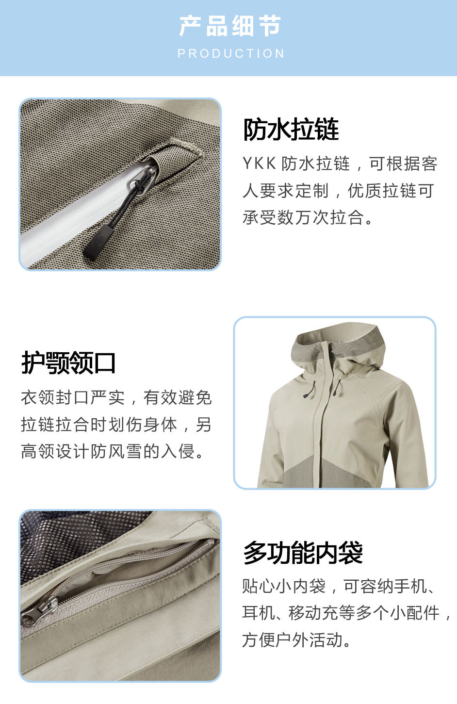 多功能內袋:戶外沖鋒衣生產具貼心小內袋,可容納手機、耳機、移動充等多個小配件,方便戶外活動。