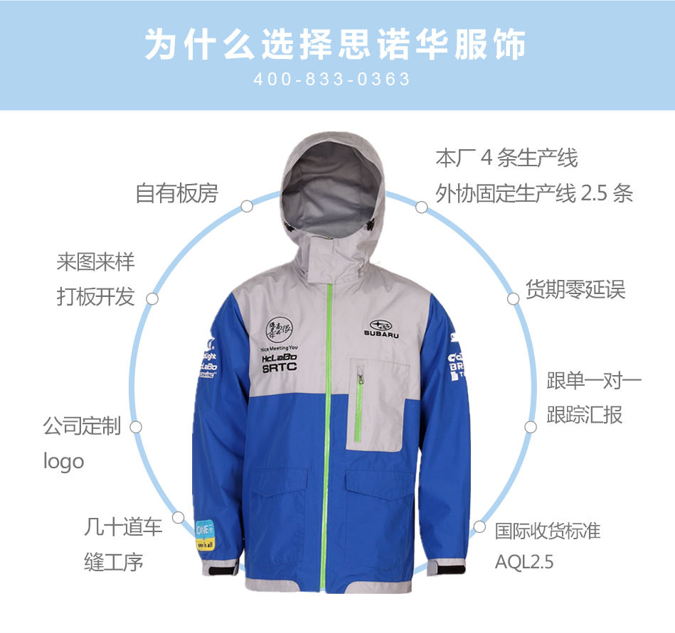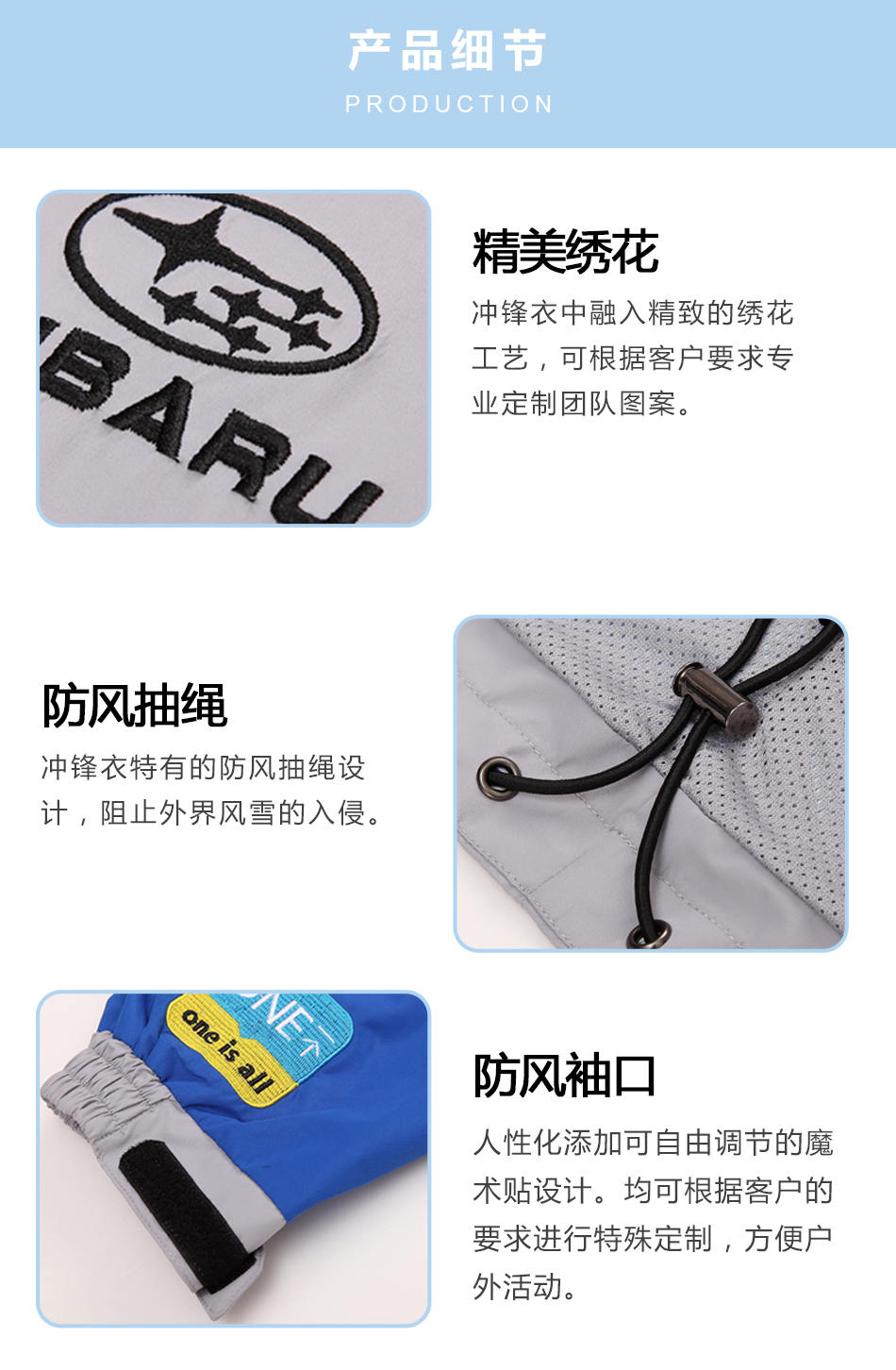 精美繡花:沖鋒衣中融入精致的繡花工藝,可根據(jù)客戶(hù)要求專(zhuān)業(yè)定制沖鋒衣團(tuán)隊(duì)圖案。